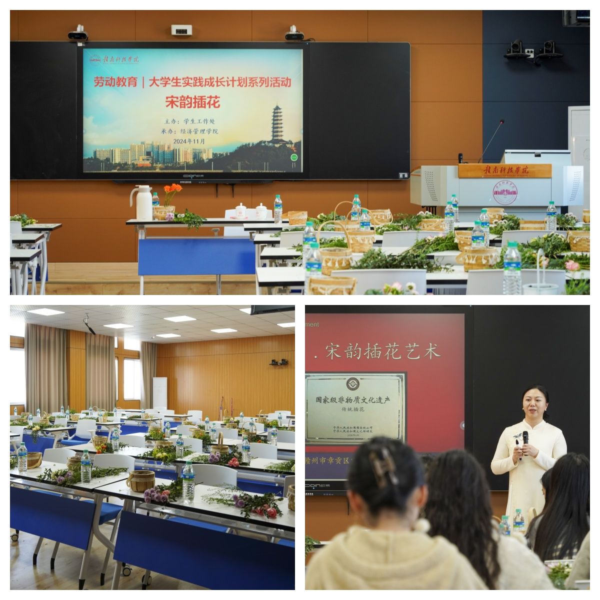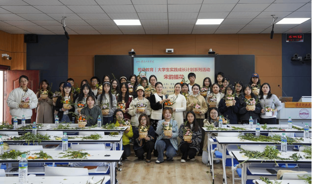 本网讯:11月27日下午,公司于崇善楼Z628教室开展“劳动赣科”老员工实践成长计划宋韵插花活动。活动邀请赣南·赣州文明夜校老师、章贡区第七批宋韵插花艺术非遗传承人李华莹为热爱花艺的40余名师生授课。