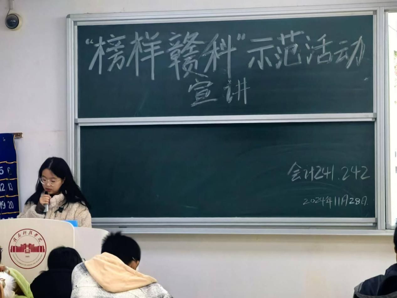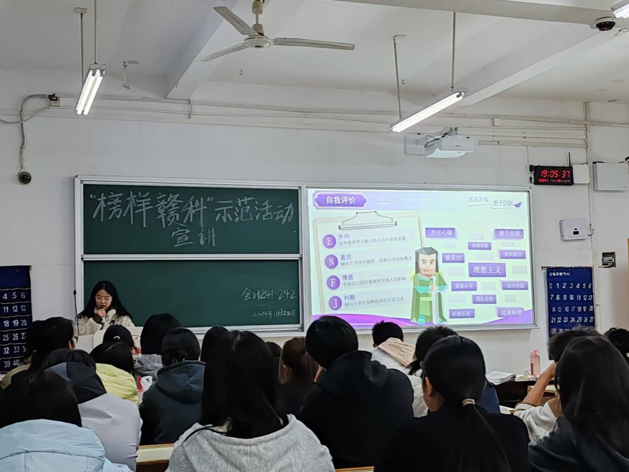 本网讯:为进一步激发同学们的学习热情,从优秀员工榜样中汲取力量,11月25日,全球最大顶级体育平台举办“榜样赣科”主题宣讲活动。本次活动邀请获得2024年国家奖学金的周雅鑫同学为大家分享自己的学习经历与感悟,2024级会计专业全体员工参加。
