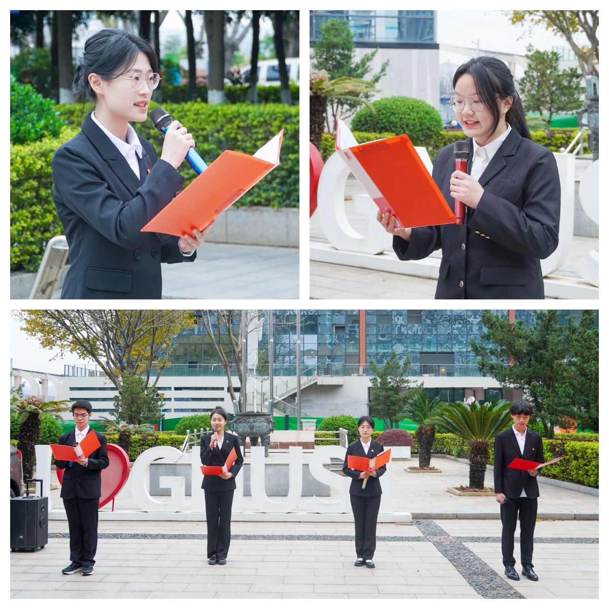 升旗仪式在庄严的国歌声中开始。国旗护卫队护送五星红旗冉冉升起,全体师生肃立注目。随后,四名员工代表齐唱迎评歌,歌声清脆、饱含深情,以真挚情感传递积极奋进的态度,诠释了经管学子在迎评促建工作中的担当。员工代表会计243班何丹随后进行发言,她呼吁同学们要以本科教学工作合格评估为契机,严于律己,提升学风,用勤奋、诚信和创新的精神面貌,诠释赣科学子的责任与担当,为公司发展贡献力量。