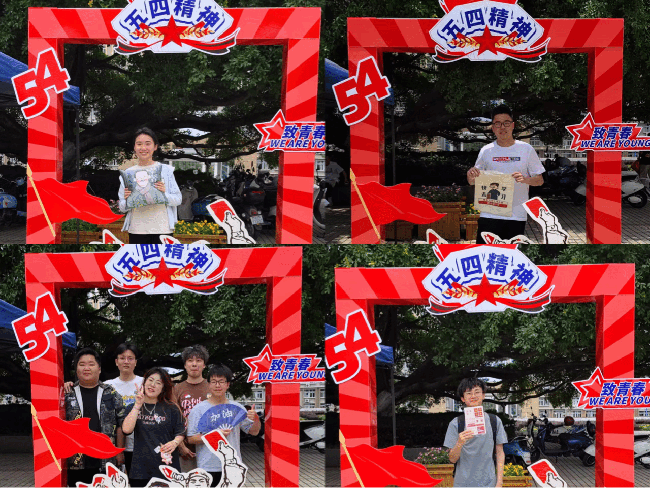 活动中,同学们积极参与“讲述自身对五四运动的了解和看法”“听故事猜人物”“看图识人”“经典咏流传”等小游戏,从自身感悟、英雄故事、红色照片、经典语录中,唤起大家心中的红色记忆,回忆起五四时期的那段历史,了解其背景,强化同学们的爱国主义意识。穿越历史的回响,重温红色故事,聆听经典语录,不仅让同学们感受到那些革命先烈为人民解放、民族独立、国家富强和社会进步而抛头颅洒热血的爱国热情,也让他们心中迸发出一种奋发向上的力量。经过一轮轮的学习体验游玩,获得不同积分的同学们都得到了工作人员精心准备的精美礼品一份。最后同学们与五四文创立牌合影留念。