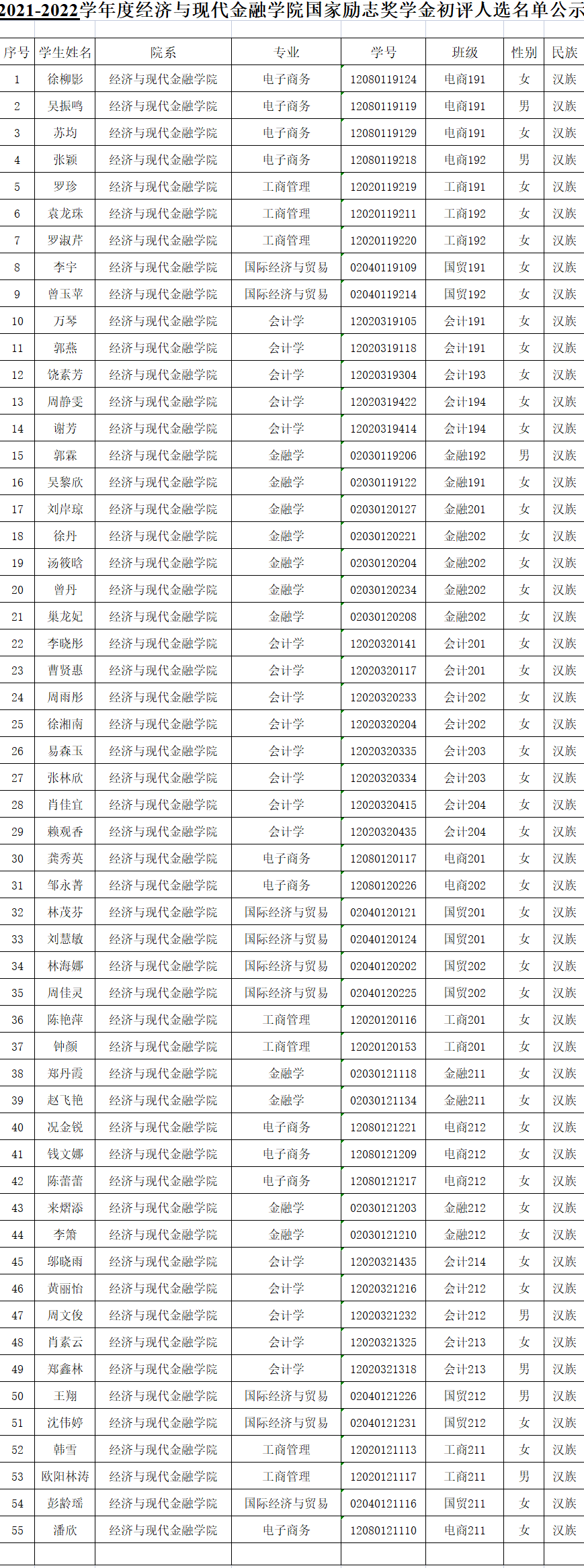 根据《全球最大顶级体育平台本科生国家励志奖学金评审实施办法》及学工《关于开展公司国家励志奖学金评定工作的通知》(〔2022〕25号)等有关文件精神,经员工个人申请、班级评议小组评议、系评审领导小组初审,已确定公司2021-2022学年度国家励志奖学金初评人选,现将名单予以公示。