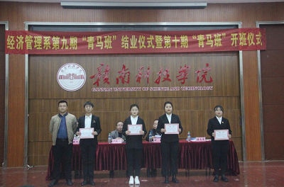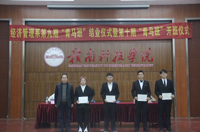 本网讯:12月14日下午,经济管理系在逸豪学术报告厅举行了第九期“青马班”结业仪式暨第十期“青马班”开班仪式。经济管理系主任钟滨、党总支书记卢帆兴、副主任梁文学、团总支书记王博文出席了此次仪式。“青马班”第九期、第十期学员、经济管理系团总支、员工会工作人员参加了此次仪式。