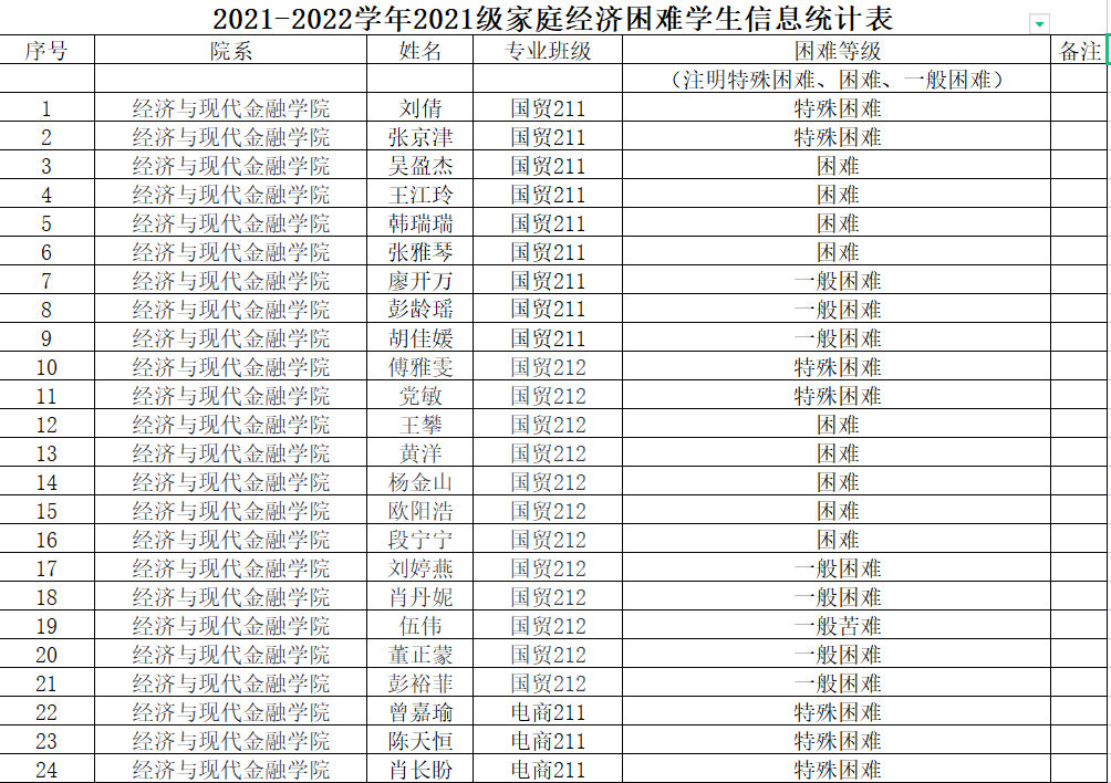 2021-2022学年2021级家庭经济困难员工信息统计表