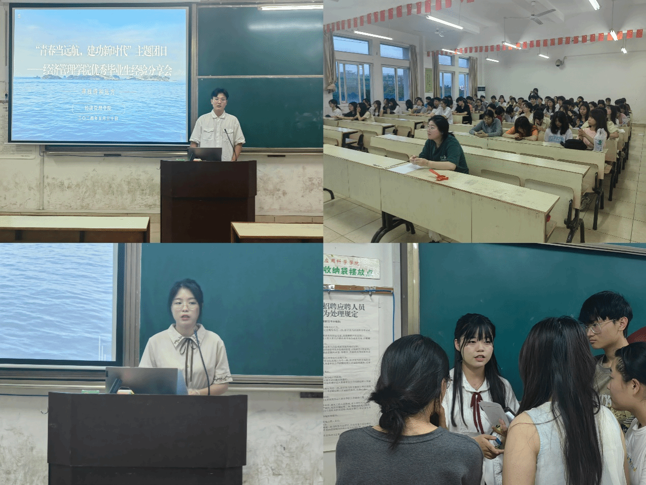 此次经验分享会共邀请了四名2020级毕业生,他们分别从不同角度讲述自己的经历。金融202班李俊霖分享他的学干经历,重点讲解如何平衡学习与工作的关系。工商201班钟颜讲述她凭借优异成绩和突出表现成功获得国家奖学金的经历。在考研方面,会计204班段雅钊结合自身经历,从考研动机、院校选择、备考过程等方面进行分享,并对现场同学提出的问题给予详细解答。她建议同学们要根据个人想法和实际情况选择考研院校,坚定个人方向,利用碎片化时间收集信息,提高学习效率。最后,会计204班游文娟分享了她的求职准备过程。
