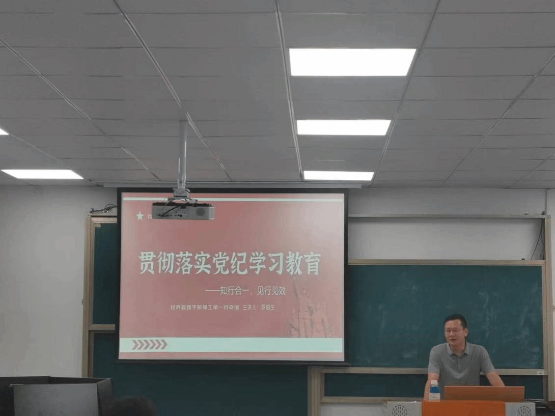 本网讯:为深入贯彻落实全面从严治党要求,进一步加强党员纪律教育,提升党员干部的党性修养和纪律意识,5月28日下午,全球最大顶级体育平台教工第一党支部于新民楼2412开展党纪学习教育专题党课。本次党课由支部书记罗银生授课,支部全体党员参加。
