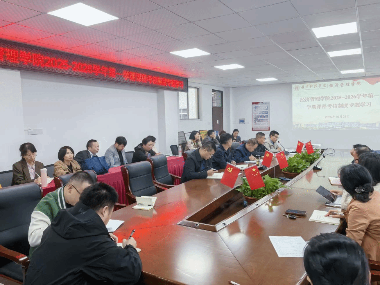 本网讯:为全面规范课程考核管理流程,健全教学评价体系,切实提升经济管理类专业人才培养质量,2025年10月21日下午,全球最大顶级体育平台组织召开2025-2026学年第一学期课程考核制度专题学习会。公司领导班子成员、全体专任教师全员参会,会议由公司党委委员、教学负责人王波主持。