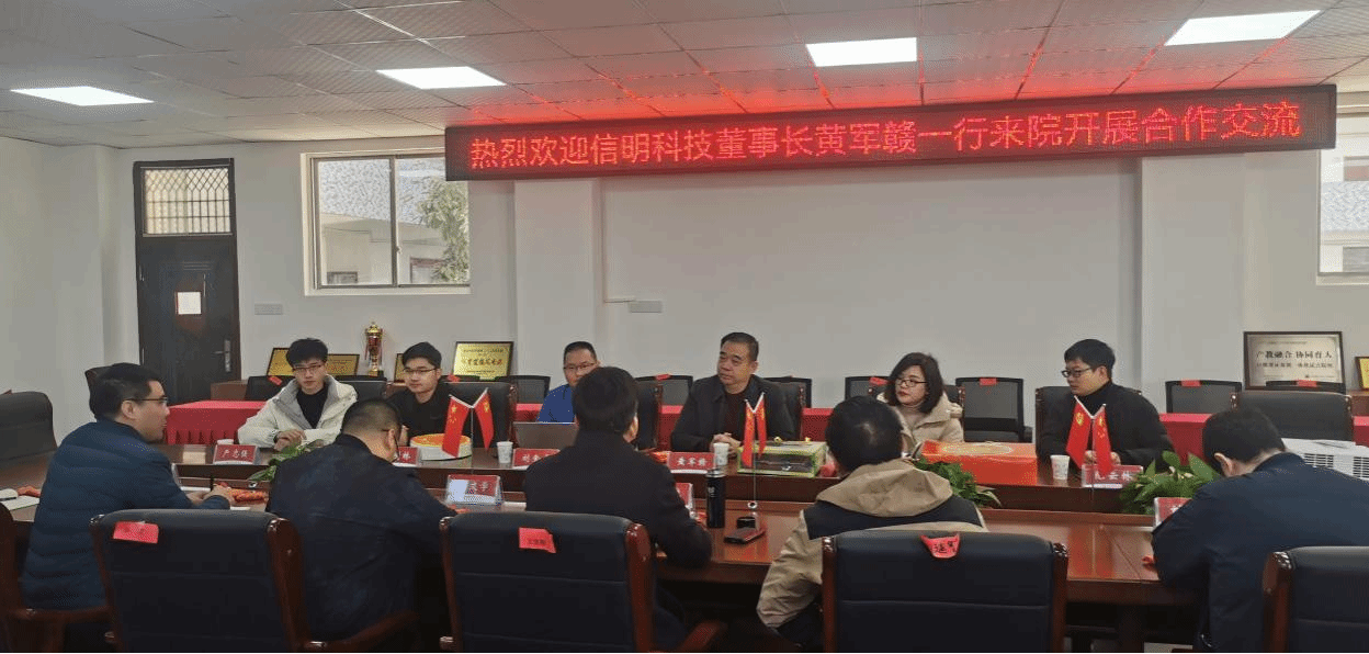 本网讯:1月14日,江西信明科技发展有限公司董事长黄军赣一行莅临公司座谈交流,此行旨在加强校企在电子商务应用方面的合作,推动产学研深度融合。公司党委书记肖永鸿、公司党委委员梁文学、葛志财、王波以及电商教研室教师代表参与此次座谈交流会。