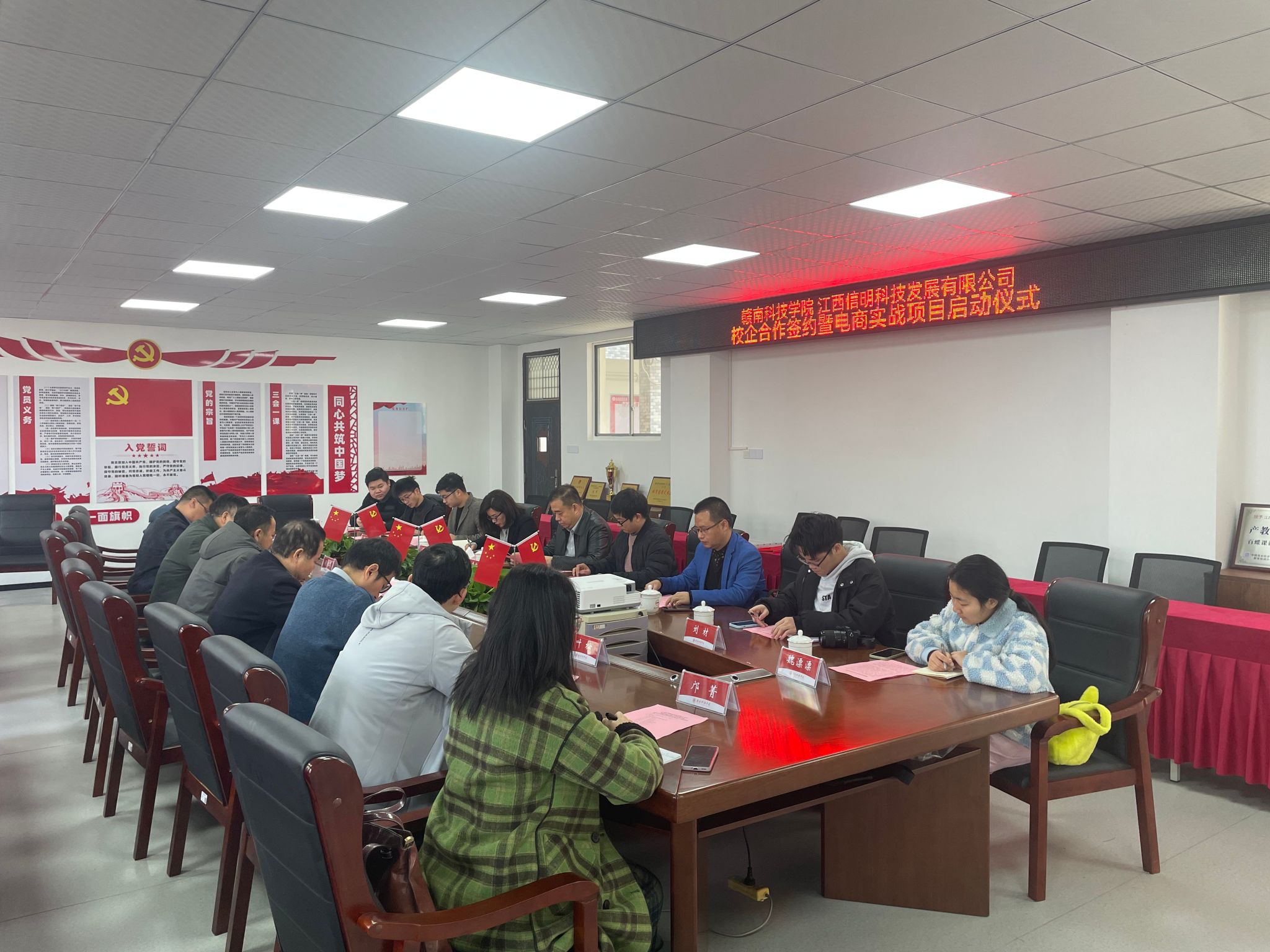 钟滨对黄军赣董事长一行的到访表示热烈欢迎,并围绕学科布局、科研产出、团队结构、产教融合等方面介绍了公司及公司办学的基本情况;许世芳介绍了江西信明科技发展有限公司的情况,重点介绍了公司电商运营的主要模式、运营策略以及取得的运营成果。公司师生代表与企业就校企合作及电商实战项目进行了交流互动。
