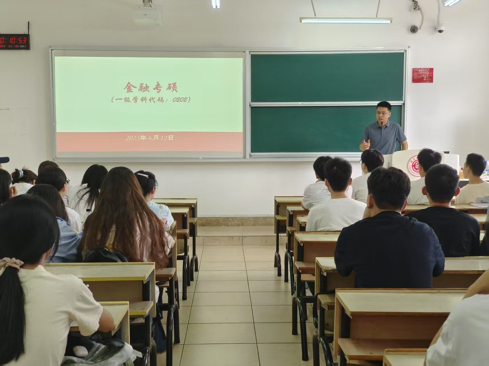 宣讲会上,曾凯霖教授围绕江西理工大学金融专硕学位点简介、人才招聘简况和主要团队三个方面进行宣讲,涵盖了该专业的学科代码、研究方向和研究内容、考试大纲和主要参考教材以及主要团队队伍等内容,为同学们勾勒出清晰的专业图景。