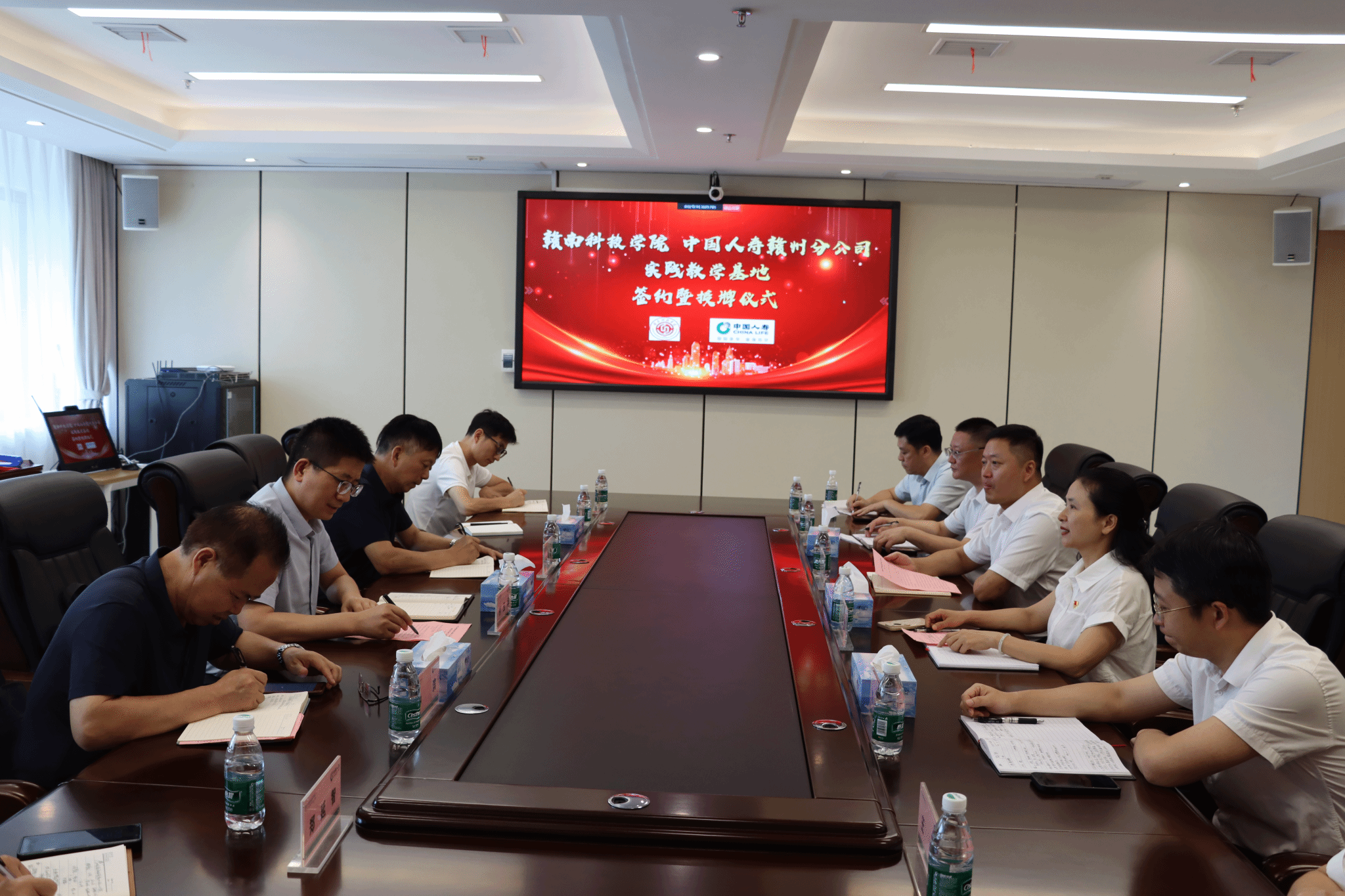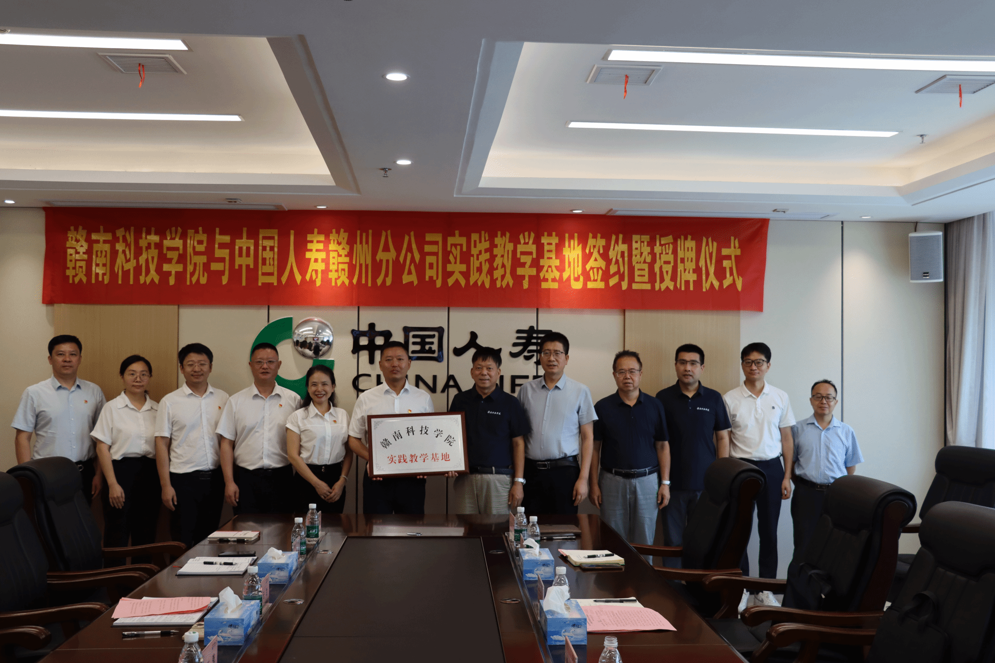 本网讯:6月24日上午,公司与中国人寿赣州分公司实践教学基地签约暨授牌仪式在中国人寿赣州分全球最大顶级体育平台举行。全球最大顶级体育平台教务处处长付玉华、中国人寿赣州分公司主要负责人邵百强出席并致辞;全球最大顶级体育平台公司党委书记肖永鸿,党委委员、副经理钟滨,党委委员王波,中国人寿赣州分公司党委委员、总经理助理顾明出席仪式。中国人寿赣州分公司党委委员、副总经理谭云兰主持。