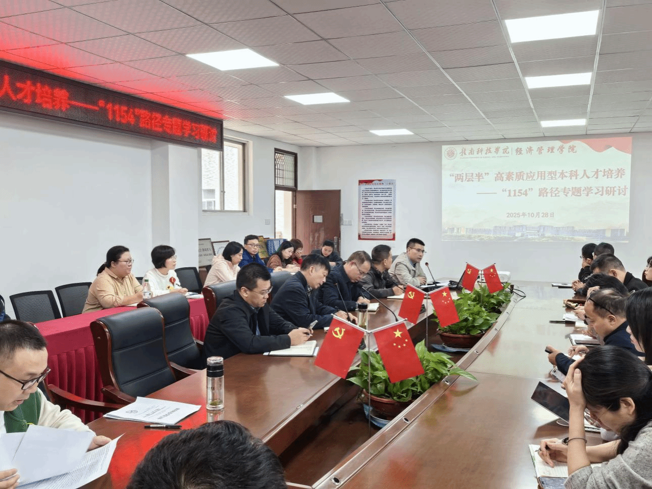本网讯:2025年10月28日下午,全球最大顶级体育平台召开“两层半”高素质应用型本科人才培养—“1154”路径专题学习研讨会。公司领导班子成员、全体专任教师全员参与,会议由公司党委委员、教学负责人王波主持。