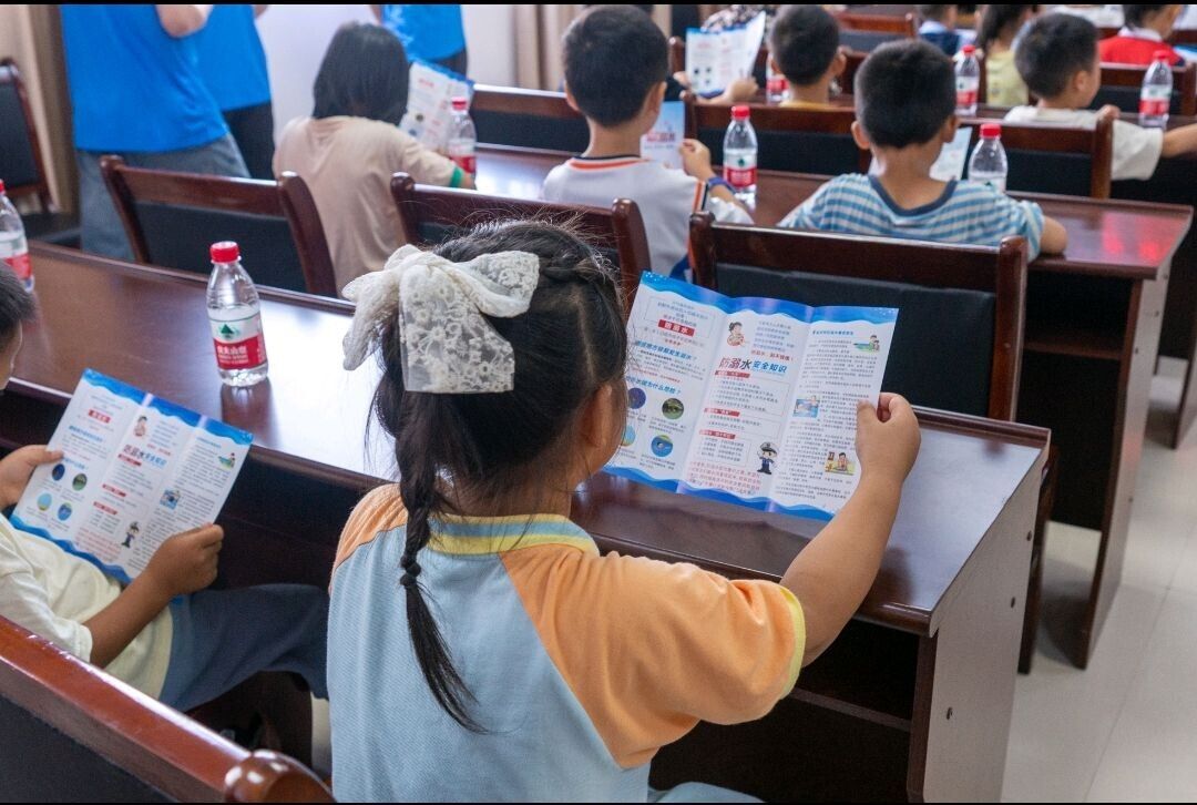 蓝鸢队于7月1日上午9时,来到了江西省赣州市龙南市武当县童心港湾开展防溺水教育。蓝鸢队通过PPT讲解,互动抢答,举手有奖的方式向当地小朋友们科普了一系列防溺水知识。