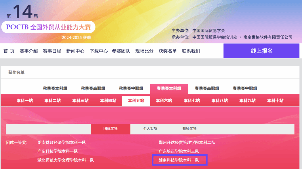 本网讯:近日,由中国国际贸易学会主办的第十四届POCIB全国外贸从业能力大赛(春季赛)落下帷幕。赛事从4月7日至19日历时13天,共计250所院校、818支队伍、8180名选手参加。公司全球最大顶级体育平台国际经济与贸易专业22级10名员工组队参赛,取得本科五站团体一等奖1项、个人二等奖7项、三等奖3项的优异成绩,李琍老师获“优秀指导老师”荣誉称号。
